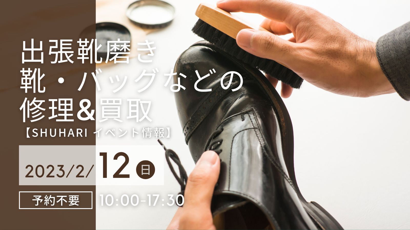 【イベント情報】2/12 出張靴磨き/靴バッグなどの修理&買取 出張修理・買取 2023.02.07 開催日2023年2月12日(日曜日)開催時間10:00〜17:30開催場所グローバルフロントタワー2Fシェアーズステーション前住所〒105-0023 東京都港区芝浦1丁目6−41
